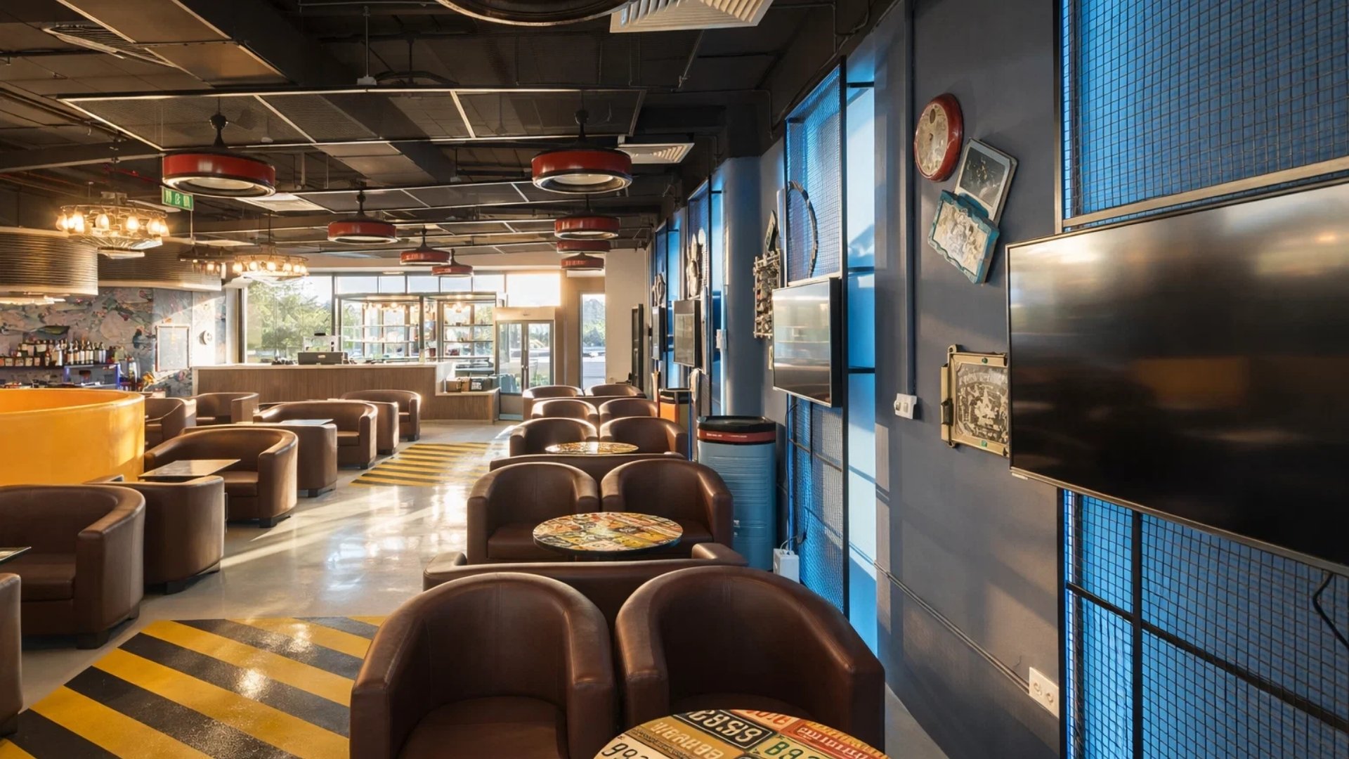 Engines, neon, and rising shisha smoke set the tone at Garage Café. The automotive-themed space pairs steady shisha with live Bollywood bands and board games.